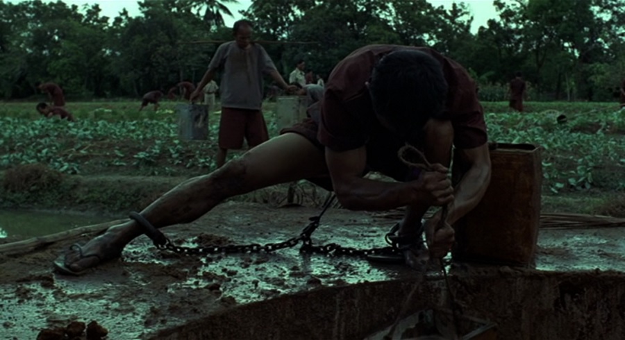 ท่วงท่าของการตักขี้ในบ่อ ต้องอาศัยทักษะทรงตัว เพราะความลื่นริมขอบบ่อ ทำให้พลักตกขุมนรกได้โดยง่าย ซึ่งก็แน่นอนว่าน้องใหม่จำเป็นต้องเปิดซิง, นัยยะของฉากนี้ คือจุดตกต่ำสุดของชีวิต … ถึงกระนั้น ขี้มันก็ยังมีประโยชน์ ใช้เป็นปุ๋ยรดต้นไม้เติบโต เป็นอาหารของคนคุกต่อไป