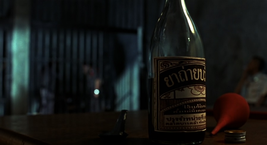 ช็อตแรกของหนังเริ่มต้นด้วยขวดยาถ่าย พื้นหลังเบลอๆได้ยินเพียงเสียงตำรวจบีีบบังคับให้นักโทษแผน เบ่ง ‘สร้อยทอง’ ออกมาทางก้อนอุจจาระ, นัยยะสะท้อนเสียดสีทิศทางของสังคมยุคสมัยนี้เต็มๆเลยว่า ผู้คนเต็มไปด้วยความละโมบโลภมาก ลุ่มหลงใหลในทรัพย์สินเงินทองล้นฟ้า แต่อย่าลืมว่าไอ้ของแบบมันมันเอายัดปากรับประทานเป็นอาหารได้เสียที่ไหน