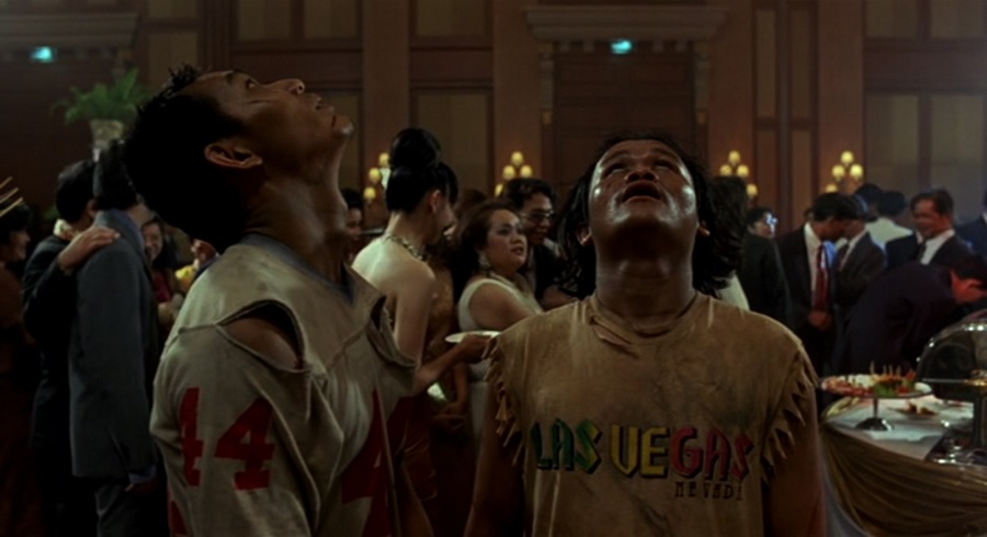 ช็อตแรกของ Sequence ถ่ายจากโคมไฟราคาแพงบนเพดาน Tilt Down ลงมาเห็นหมาหัวเน่าสองตนนี้เงยหน้าขึ้นมอง(เครื่องบิน) เพ้อใฝ่ฝันอยากประสบความสำเร็จ ร่ำรวยเงินทอง แต่ก็ห่างไกลเกินอาจเอื้อมมือ