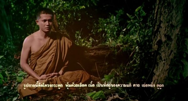 ไดเรคชั่นช่วงความว้าวุ่นใจของพระริด ระหว่างกำลังครุ่นคิดเหม่อลอย ภาพหน้าอกสาวที่จดจำติดตาปรากฎขึ้นมาแวบหนึ่ง ซึ่งจะมีตอนเริ่มนั่งจ้องอสุภะนี้ เป็น Dynamic Shot ซ้อนทับกับกะโหลกศีรษะของศพพอดิบพอดี