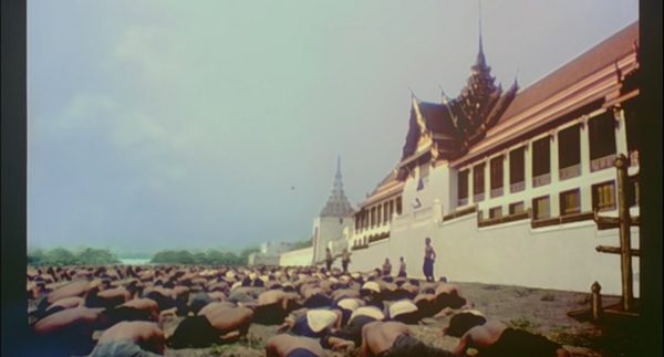 เป็นฉากอ้างอิงจากประวัติศาสตร์ที่น่าสนใจมากทีเดียว พลับพลาลักษณะนี้น่าจะตั้งแต่สมัยกรุงศรีอยุธยาเลยกระมัง เจ้านายนั่งสบายด้านบน ขณะที่ประชาชนนั่งพับเพียบก้มหมอบกราบ เงยหน้าขึ้นเฉพาะตอนได้รับโอกาสให้พูดแสดงความคิดเห็นเท่านั้น