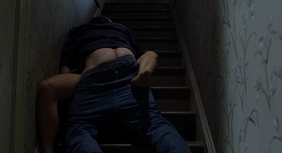 ตรงกันข้ามกับ Sex Scene ตอนต้นเรื่อง นี่เป็นช่วงเวลาที่ Edie เต็มไปด้วยอคติ ไม่พึงพอใจต่อสามี Tom แม้ยินยอมเล่นละคอนตามน้ำระหว่างให้การกับตำรวจ แต่เธอยังปฏิเสธยกโทษให้อภัย เขาจึงพยายามติดตามงอนง้อ ฉุดกระชากลากเธอลงมาร่วมรักตรงบันได … ทั้งท่วงท่า Missionary (ชายอยู่เบื้องบน) และการใช้ความรุนแรงระหว่างร่วมรัก นี่คือลักษณะของการบีบบังคับ อีกทั้งฝ่ายหญิงก็ดูไม่ค่อยยินยอมพร้อมใจ จะเรียกว่าการข่มขืน (Rape) ก็ได้กระมัง