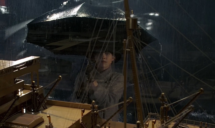 ภาพสุดท้ายของหนัง Adela Quested หลังอ่านจดหมาย Dr. Aziz เขียนบอกว่ายินยอมให้อภัยทุกสิ่งอย่างที่เกิดขึ้นในอดีต ไม่ครุ่นคิดติดใจอะไร แถมยังอำนวยอวยพรให้อยู่ดีมีสุข ปราศจากโรคภัย ทำให้เธอเดินตรงไปหน้าต่าง หยาดฝนตกภายนอกพรำลงมา แทนคราบน้ำตาหลั่งไหลรินออกมาจากภายใน แสดงความซาบซึ้ง ขอบคุณ สำนึกผิดจากใจ