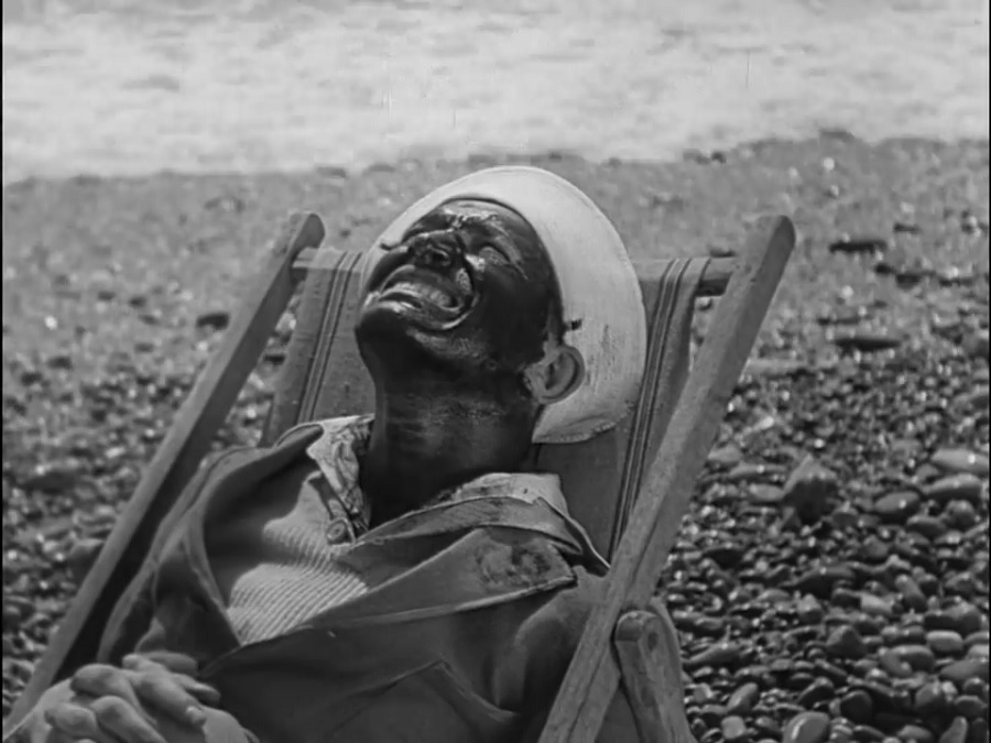 ผมไม่ค่อยแน่ใจนักว่าภาพชายนอนอาบแดด แล้วโบ๊ะผิวสีดำแฝงนัยยะอะไร แต่การตัดไปภาพจระเข้ที่ก็นอนอาบแดดอยู่ริมบ่อน้ำ นั่นคือการเปรียบเทียบอย่างตรงไปตรงมา มนุษย์=จระเข้ สัตว์เลื้อยคลาน เป็นผู้ล่า มีความดุร้าย ชอบล่อหลอกเหยื่อให้ตายใจ จากนั้นฉีกกัดเนื้อหนัง กลืนกินเหยื่อทั้งๆยังมีลมหายใจ (พฤติกรรมของจระเข้ สามารถสะท้อนสันดานธาตุแท้ของคนชนชั้น Upper Class)