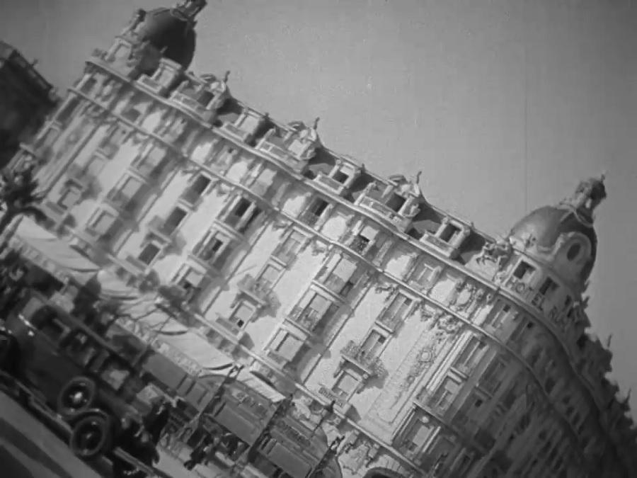 ซึ่งสำหรับ À propos de Nice (1930) เหมือนจะมีทิศทางกลับกัน คือเริ่มจากภาพมุมเอียง (Dutch Angle) หมุนกลับสู่มุมมองปกติ ส่วนนัยยะก็เพื่อสร้างสัมผัสผิดปกติ รู้สึกเหมือนบางสิ่งอย่างเคลือบแอบแฝง ปกปิดซ่อนเร้น เต็มไปด้วยลับลมคมใน … ตึกสวยๆเหล่านี้ ผมคาดเดาว่าภายในน่าคือโรงแรม บ่อนคาสิโน กระมังนะ!