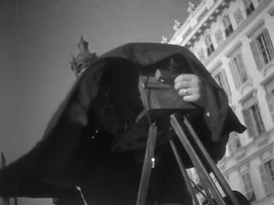- น่าจะคือผู้กำกับ Jean Vigo หลบซ่อนอยู่ในผ้าคลุม ถ่ายมุมเงยติดอาคารด้านหลัง