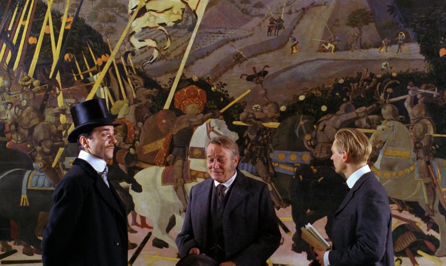 เอาจริงๆ Cecil Vyse สมควรเป็นอย่างที่ George Emerson ว่ากล่าวไว้ เป็นตัวแทนชาวอังกฤษที่ยึดถือมั่นในขนกฎกรอบ ธรรมเนียมประเพณี ไม่สามารถโอนอ่อนผ่อนปรนต่อสิ่งใดๆ แต่การแสดงของ Day-Lewis สร้างมิติให้ตัวละครจับต้องได้มากกว่าที่ควรเป็น ทำให้ผมเชื่อว่าเขาสามารถปรับตัวเปลี่ยนแปลงตนเอง ด้วยความรักที่จักมั่นคง ซื่อสัตย์ จริงใจ … ผิดกับการแสดงของ Julian Sands ที่(คนละชั้นกับ Day-Lewis)ดูหมกมุ่น มักมาก สนเพียงกระทำสิ่งตอบสนองความต้องการของหัวใจ มันช่างจอมปลอม หลอกลวง สักวันอาจต้องเลิกราหย่าร้าง นอกใจกันอย่างแน่นอน!