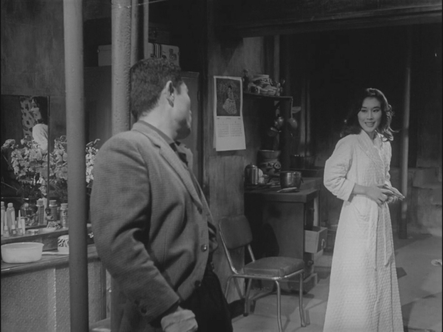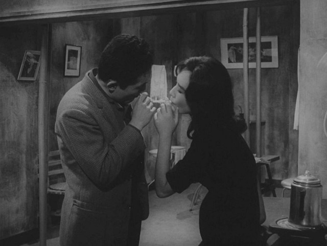 หลังจาก Myeong-suk ไม่ได้กลับบ้านเมื่อคืน เช้าตื่นขึ้นมา Yeong-ho บังเอิญพบเจอ Seol-hui นางพยาบาลที่เคยดูแลเขาในโรงพยาบาล ยังบริเวณจุดตัดทางข้ามรางรถไฟ (สัญลักษณ์ของการพบเจอ-พรากจาก) แล้วชักชวนให้ร่วมออกเดินทางไปที่ห้อง … ผมอ่านฉากนี้คือสิ่งที่เกิดขึ้นกับ Myeong-suk เพราะหนังไม่สามารถนำเสนอภาพออกมาตรงๆว่าเธอคือโสเภณี ขึ้นห้องร่วมรักหลับนอนกับทหารอเมริกา (มากสุดได้แค่ฉากที่เธอยืนรอเรียกลูกค้า และทหารอเมริกันเข้ามาเกี้ยวพาราสี)