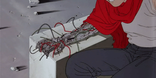 แขน คืออวัยวะที่มนุษย์สามารถใช้ช่วยเหลือตนเอง (อย่าไปคิดอะไรเสื่อมนะครับ) การที่ Tetsuo สูญเสียแขนข้างขวา ย่อมสะท้อนถึงไร้ความสามารถเอาตัวรอดด้วยตนเอง ซึ่งเขาพยายามซ่อมแซม แต่มันกลับคือชวนสาเหตุให้เกิดการ ‘Berserk’ คลุ้มคลั่ง ลุกลามบานปลายไปส่วนอื่นๆของร่างกาย