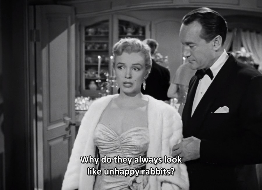 เอาจริงๆผมว่าประโยค “Why do they look always like unhappy rabbits?” น่าจะได้รับการจดจำกว่า “You won’t bore him, honey. You won’t even get a chance to talk.” ที่ได้รับการโหวตติดอันดับ #25 ชาร์ทนิตยสาร Premiere: The 100 Greatest Movie Lines (2007)