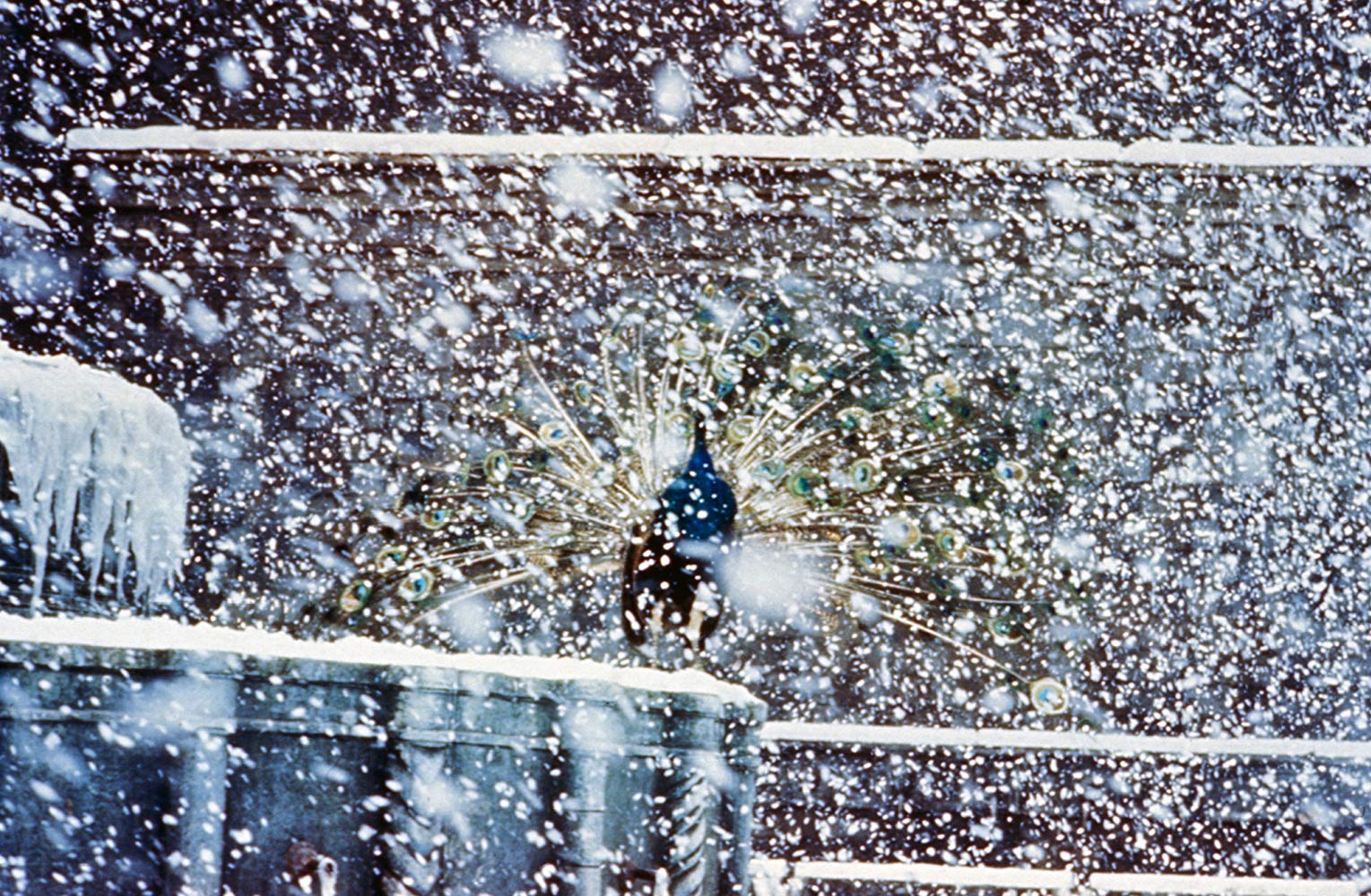 นกยูง ในบริบทนี้น่าจะคือสัญลักษณ์ของอิสรภาพ แม้ท่ามกลางสภาพอากาศหนาวเหน็บ หิมะตก แต่มันก็ยังสยายกางปีก รำแพนหางได้อย่างงดงามวิจิตร สะกดจิตใจใครๆทั้งหลายพานพบเห็น ตราตรึงไปกับมัน