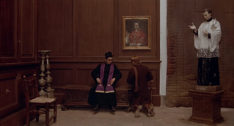 – ระหว่าง Titti กำลังทำการสารภาพบาป กลับจินตนาการถึงหญิงขายบุหรี่ ต่อด้วย Gradisca พอเสร็จสิ้นก็พร้อมเพื่อนๆ ช่วยตนเองบนรถในโรงนา สะท้อนถึงศาสนาหาได้เป็นสิ่งจรรโลงใจมนุษย์แม้แต่น้อย