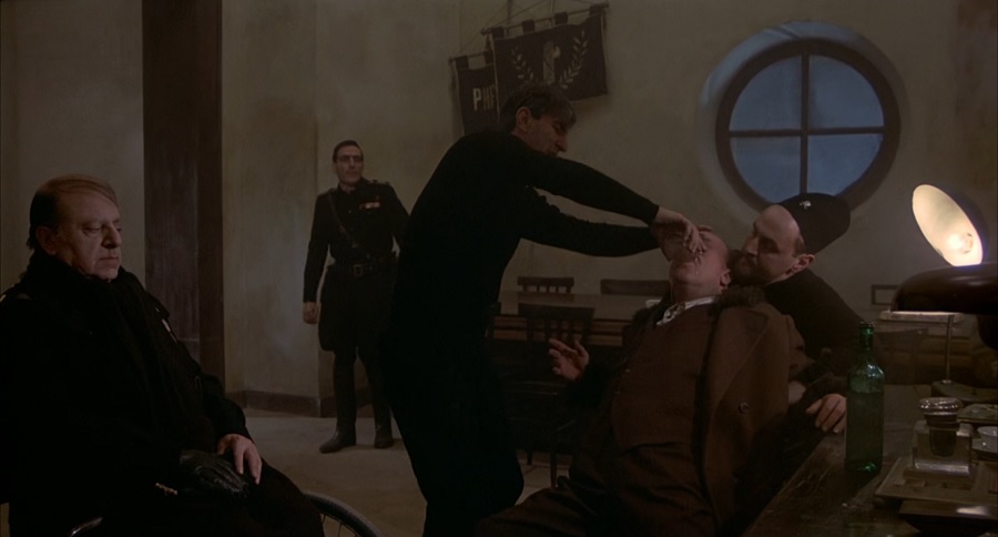 จะมองว่าเป็นกรรมสนองของพ่อก็ยังได้ ที่ชอบขึ้นเสียงต่อว่าลูกชาย ปากเปียกปากแฉะ เลยถูกเจ้าหน้าที่ Fascist นำเหล้ากรอกปาก แต่นัยยะเชิงสัญลักษณ์คือการบีบบังคับให้ยึดถือมั่นในอุดมการณ์ เชื่อมั่นในท่านผู้นำสูงสุด Il Duce