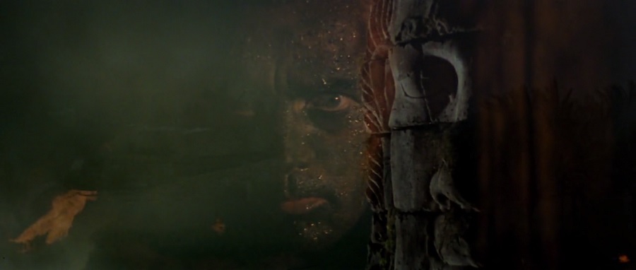 – และภาพใบหน้าของผู้พัน Kurtz ราวกับได้กลายสภาพเป็นวิญญาณแห่งความชั่วร้ายอยู่กึ่งกลางภาพ และพูดคำว่า “The Horror” ซ้ำไปซ้ำมาอีกเป็นครั้งสุดท้าย ก่อนหันหน้าไปทางขวาแล้วค่อยๆจางหายไป