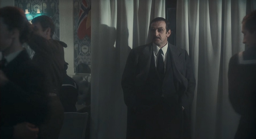จริงๆจะมีช็อตก่อนหน้านี้ที่ Philippe Gerbier เดินทัวร์ค่ายกักกันตรงเข้าหากล้อง เป็น Long-Take ที่ใช้การซูมเข้า-ออก เคลื่อนแพนไปมาซ้ายทีขวาที (ตามการเดินโฉบเฉี่ยวไปมาของตัวละคร) และเสียงบรรยายแนะนำสมาชิกประเภทต่างๆของค่ายกักกันจากหลายๆชนชาติ/เชื้อชาติ ซึ่งคงจะพอดิบพอดีกับขณะที่เขาเดินโฉบไปยังบ้านหลังต่างๆ