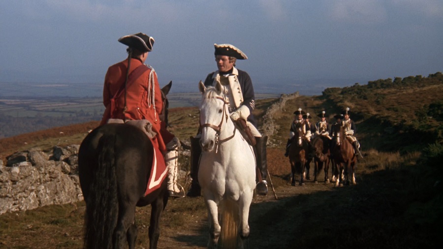 The problem here was how to get Barry out of the British Army. The section of the book dealing with this is also fairly lengthy and complicated. The function of the scene between the two gay officers was to provide a simpler way for Barry to escape. Again, it leads to the same end result as the novel but by a different route. Barry steals the papers and uniform of a British officer which allow him to make his way to freedom. Since the scene is purely expositional, the comic situation helps to mask your intentions.
