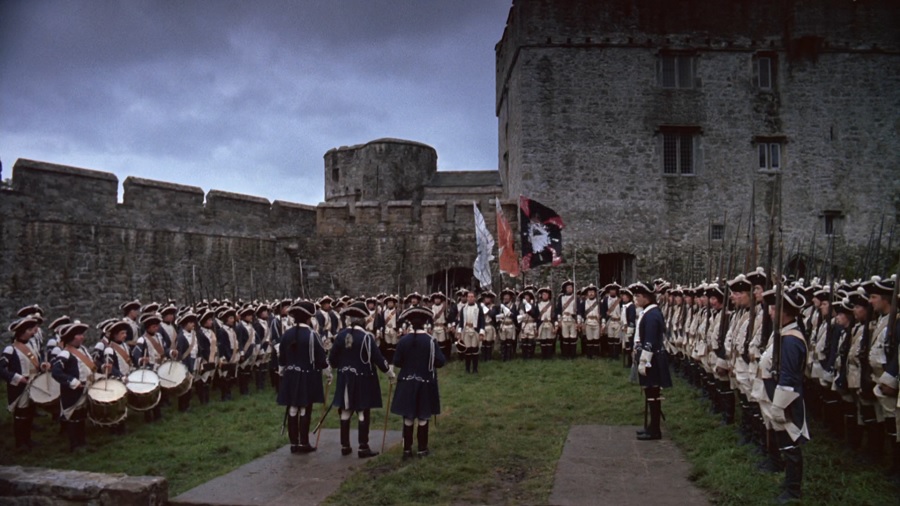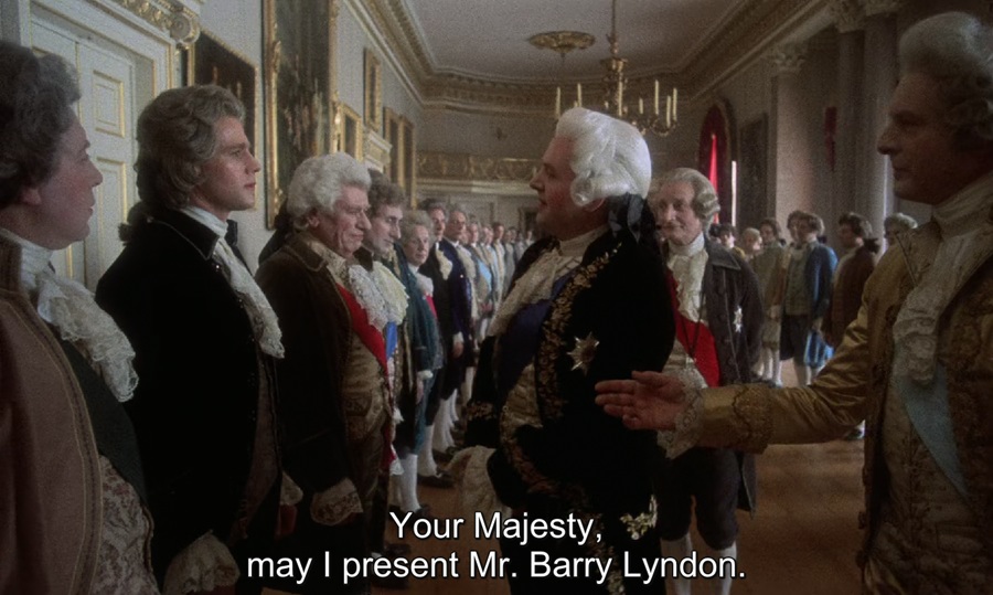 มุมกล้องตอน Redmond Barry (Lyndon) พบเจอกับ King George III ชวนนึกถึงภาพยนตร์ The Clockwork Orange (1971) เมื่อตอนรัฐมนตรีเดินทางมาเยี่ยมเยียนเรือนจำ แล้วมีการเรียงแถวหน้ากระดาน Alex พยายามทำตัวโดดเด่นเรียกร้องความสนใจ … แต่คราวนี้เหมือนว่า Redmond Barry (Lyndon) จะประสบความล้มเหลวในการเรียกร้องความสนใจ
