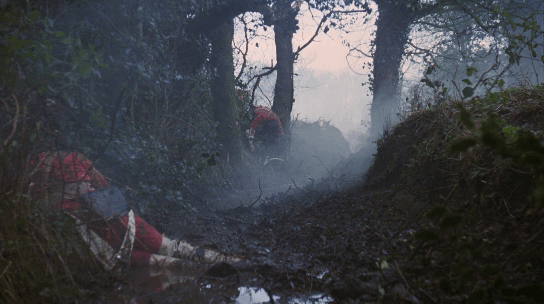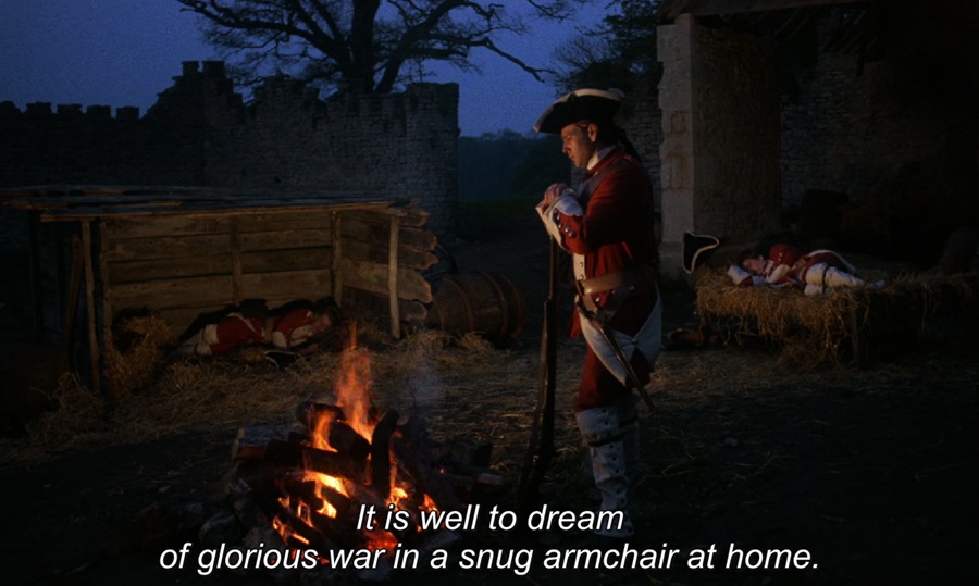 Captain Grogan อาจถือเป็นตัวแทนบิดา (Father Figure) คนแรกของ Redmond Barry ตอนอยู่บ้านเกิดแม้มีฉากพูดคุยกันนิดๆหน่อยๆ แต่พออาสาสมัครทหารก็ได้ชายคนนี้ให้ความช่วยเหลือ พึ่งพาอาศัย ดูแลกันและกัน ความตายของเขาย่อมสร้างความห่อเหี่ยว สิ้นหวัง เย็นวันนี้ยืนเฝ้ายาม จับจ้องมองกองไฟ (แวบแรกผมนึกว่าสื่อถึงการฌาปนกิจ แต่ชาวตะวันตกไม่ใช้วิธีการกลบฝัง) ตระหนักถึงความจอมปลอมของชื่อเสียง-เกียรติยศ ในความฝันมันช่างสวยงาม แต่ความสูญเสียในสงครามมันไม่คุ้มค่าเลยสักนิด!