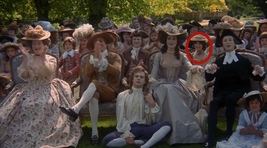 บุคคลในวงกลมสีแดงก็คือ Vivian Kubrick บุตรสาวของผกก. Kubrick นี่เป็นการปรากฎตัว (Cameo) ครั้งที่สองต่อจาก 2001: A Space Odyssey (1968) โตเป็นสาวแล้วสินะ! … ในซีเควนซ์นี้ยังพบเห็นเธออีกหลายช็อตนะครับ ใครว่างๆก็ลองมองหาดู