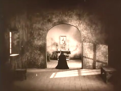 อีกหนี่งการออกแบบฉากที่สวยงามมากๆ Carmen นั่งคุกเข่าอธิษฐานขอพระผู้เป็นเจ้า อำนวยอวยพรให้ Juan Gallardo สามารถเอาตัวรอดพานผ่านช่วงเวลาดังกล่าวไปได้ แต่บรรยากาศของสถานที่นี้มันช่างอีมครีม น่าขนหัวลุกพอง มีเพียงแสงสว่างส่องผ่านบานหน้าตาตกกระทบพื้นผนัง แลเห็นเหมือนไม้กางเขน แทนด้วยสัญลักษณ์ของความตาย(เพื่อจักได้บังเกิดใหม่)
