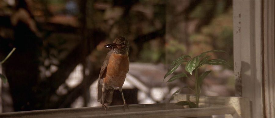 Jeffrey สารภาพสิ่งที่พบเห็น(ในห้องของ Dorothy)ต่อ(แม่พระ) Sandy ยังสถานที่พื้นหลังภายนอกโบสถ์แห่งหนึ่ง สภาพจิตใจของเขายังเต็มไปด้วยความหดหู่ สิ้นหวัง ไม่อยากเชื่อสายตาว่าโลกเรานี้อะไรอย่างนั้นซุกซ่อนเร้นอยู่ด้วย ซึ่งหญิงสาวก็ได้เทศนาสั่งสอนเกี่ยวกับนกโรบิน สัตว์สัญลักษณ์แห่งความรัก สามารถพัดพาความมืดมิด/สิ่งชั่วร้ายให้มลายสูญสลายไปได้