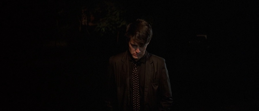 วินาทีที่ Jeffrey ออกจากอพาร์ทเม้นท์ของ Dorothy จะพบเห็นช็อตนี้ที่เขาเดินจากความมืดมิด เงยหน้าขึ้นรับแสงสว่างจร้า เรียกว่าเป็นซีนแนวคิดเดียวกับฉากปรากฎตัวครั้งแรกของ Sandy สามารถสื่อถึงสิ่งที่ชายหนุ่มพบเห็นทั้งหมดค่ำคืนนี้ ราวกับว่าแค่เพียงความฝัน(ร้าย) และช็อตต่อไปเปลวไฟมอดดับ ลุกขึ้นจากเตียงนอน … หนังสร้างความสองแง่สองง่ามนี้ไว้ตลอดทางนะครับ เพื่อให้อิสระผู้ชมได้ครุ่นคิดตีความเอาเอง ทั้งหมดอาจเป็นเรื่องจริง หรือแค่เพ้อฝัน(ร้าย)ก็ได้เหมือนกัน