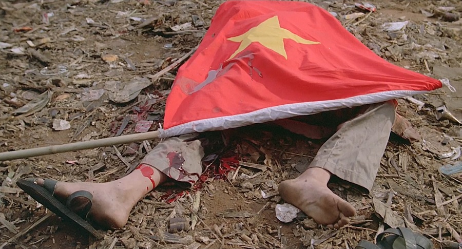 สำหรับประชาชนทั่วๆไป ข้าวปลาไม่มีอันจะกิน เด็กชายวันหญากต้องขุดคุ้ยกองขยะ เผื่อค้นพบสิ่งของมีค่านำไปค้าขายได้ราคา แต่โชคร้ายอะไรปานนั้น หยิบระเบิดมือขึ้นมา ตูม! แล้วพบเห็นใครบางคนวิ่งเอาธงชาติเวียดนามมาปกคลุม มองมุมหนึ่งเพื่อไม่ให้ผู้ชมทนเห็นภาพบาดตาบาดใจ ซึ่งลักษณะนี้คล้ายๆพิธีศพของทหาร คือการให้เกียรติ/สตุดีความเสียสละ ตายอย่างลูกผู้ชาย เพื่อคนอื่นจักรอดชีวิตอีกมากมาย
