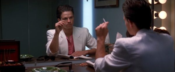 เริ่มต้นที่ประโยคคำพูดของ Marlon Brando ใน On the Waterfront (1954) กลายมาเป็น Robert De Niro สนทนากับตนเองหน้ากระจกเรื่อง Raging Bull (1980) แม้ฉากนี้จะมีลักษณะสะท้อนกัน แต่ Dirk Diggler ก็ครุ่นคิดคำพูดใหม่ให้กับตนเอง ก่อนโชว์ของสงวนให้โลกประจักษ์พร้อมตกตะลึง