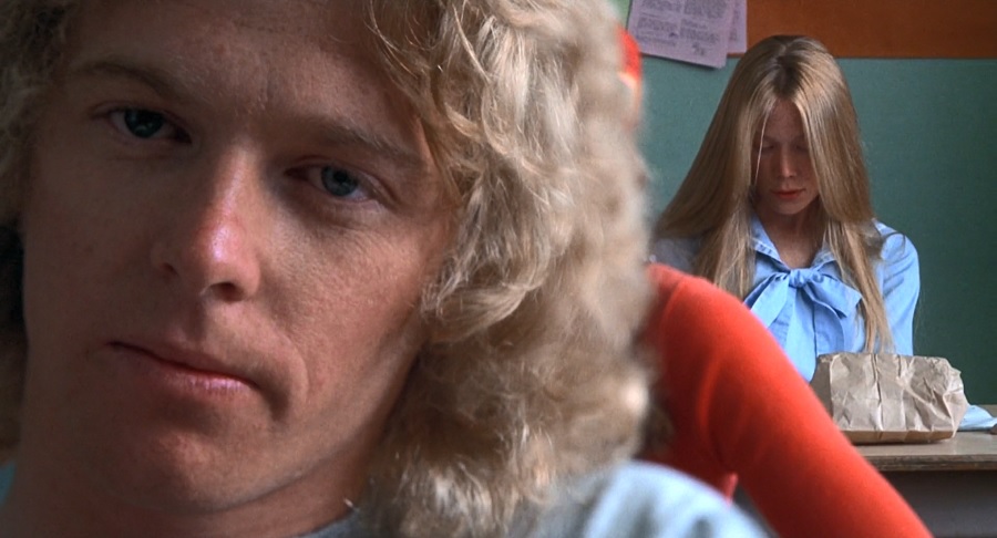 มีอยู่ 2-3 ช็อตที่ใช้เลนส์ชื่อว่า Split-Focus Diopter ภาพจะคมชั้นทั้ง 2 ฝั่งในระยะใกล้ไกล, อย่างช็อตในห้องเรียนนี้ สังเกตว่าผมของ Tommy จะเบลอๆ เพราะตกในช่วงเลนส์ระยะไกล เป็นการนำเสนอปฏิกิริยาของทั้งสองตัวละครไปพร้อมๆกัน มีความแตกต่างราวฟ้ากับเหว (Tommy มีความอับอายขายหน้าที่ได้ยินคำชมนี้ ส่วน Carrie คำพูดชมของเธอออกมาจากใจจริง)