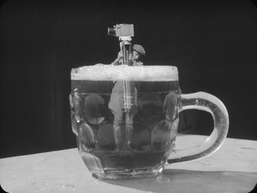 เมื่อนำสองฟีล์มสองม้วนมาตัดแปะร้องเรียงเข้าด้วยกัน ทำให้พบเห็นเหมือนตากล้องขนาดย่อส่วน ขึ้นไปยืนบนกล้องถ่ายภาพขนาดใหญ่ … นี่คือความมหัศจรรย์/มายากลของภาพยนตร์ ซึ่งสะท้อนถึงทฤษฎี Kino-Eye ของผู้กำกับ Vertov เปิดโลกทัศน์ความจริง นำเสนอมุมมองที่เป็นไปไม่ได้ให้บังเกิดขึ้น