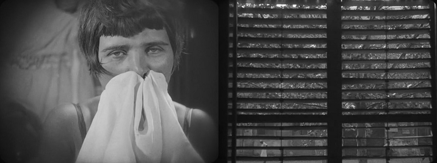 สายตาสลึมสะลือของหญิงสาว = บานเกล็ดสอนบานที่ขยับเคลื่อน เปิด-ปิด พบเห็นแสงสว่างจากภายนอกสาดส่องเข้ามา เช่นเดียวกับ Extreme Close-Up เลนส์หน้ากล้องที่กำลังปรับโฟกัส และภาพดอกไม้ที่เดี๋ยวเบลอ-ชัด