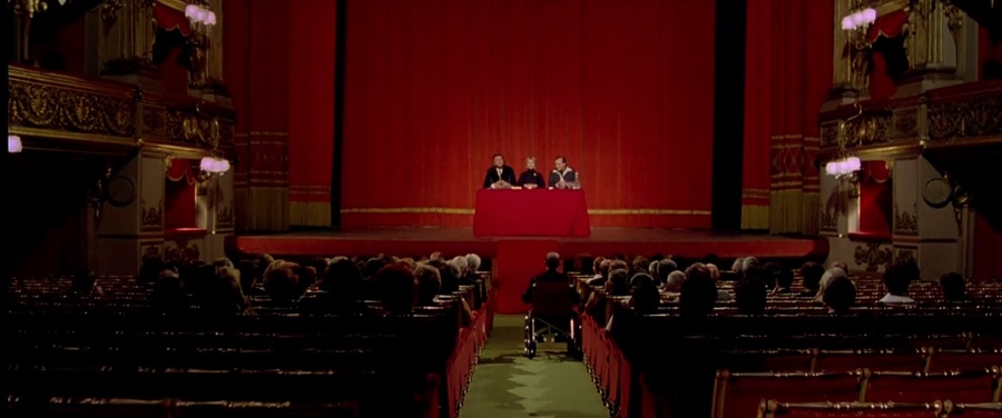 หลายๆฉากของหนังเป็น Long Take สร้างสัมผัสให้ผู้ชมหายใจยาวๆ เกิดความรู้สึกปั่นป่วนไม่ทั่วท้อง (เมื่อไหร่มันจะคัทหว่า?) อย่างฉากนี้กล้องเคลื่อนมาจากด้านนอก ผ่านผ้าม่าน จากนั้นซูมเข้าไปที่สามคนบนเวที ฉากสีแดงเจิดจรัสมากๆ ลึกเข้าไปในห้วงแห่งจิตวิญญาณ ‘Deep Red’