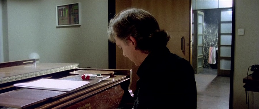 แนะนำพระเอกว่าเป็นนักเปียโนแจ๊ส ซ้อมดนตรีในห้องโถงประหลาด รายล้อมด้วยเสาสถาปัตยกรรมโรมันโบราณ, ความน่าสนใจของฉากนี้คือคำแนะนำ การเล่นดนตรีที่ดีไม่ใช่ความสมบูรณ์แบบ ถูกต้องเปะๆทุกโน๊ต ท่วงทำนอง จังหวะ แบบนั้นมันหุ่นยนต์โปรแกรมแล้ว! มนุษย์ควรต้องใส่จิตวิญญาณ อารมณ์ ความผิดพลาด นั่นแหละคือความสมบูรณ์แบบแท้จริง!