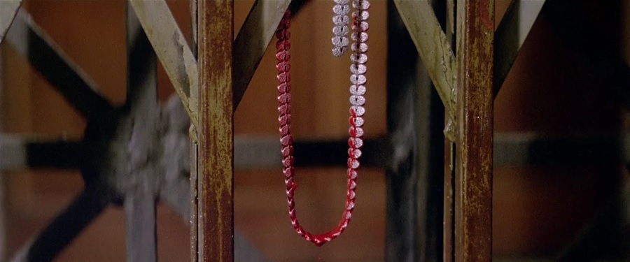 ไดเรคชั่นของฉากนี้ ผู้ชมจะพบเห็นวินาทีที่คอของหุ่น ถูกสร้อยคอดึงรัดตัดขาดเลือดทะลัก แต่ก็แค่นั้นนะครับ ไม่เห็นศพ ไม่เห็นศีรษะหลุดจากร่าง หรือตัวไร้หัว แค่ภาพของสร้อยพร้อมเลือดอาบช็อตนี้ ติดบนลิฟท์ที่กำลังค่อยๆเคลื่อนลง จบท้ายด้วย Ending Credit ใบหน้าพระเอกสะท้อนกับกองเลือดสีแดง แต่แค่ก็นี้เชื่อว่าทำให้หลายคนกรีดกราย คอหด เสียววาบ
