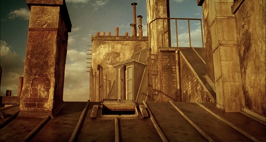 งานภาพของหนังมีการใส่ฟิลเลอร์ ปรับโทนสีเหลือง-ส้ม ให้มีความเป็น post-apocalyptic เข้ากับความโลกที่ล่มสลาย อพาร์ทเม้นท์ใกล้ผุพังทลาย มอบสัมผัสแห้งเหือด หมดสิ้นหวัง (โทนสีเดียวกับ Stalker (1979)) ฉากภายนอกมักเต็มไปด้วยฝุ่นควัน กลางวันก็ดูหม่นๆเหมือนพลบค่ำ (ยกเว้นช่วงท้ายที่พอเห็นแสงสว่างรำไร)