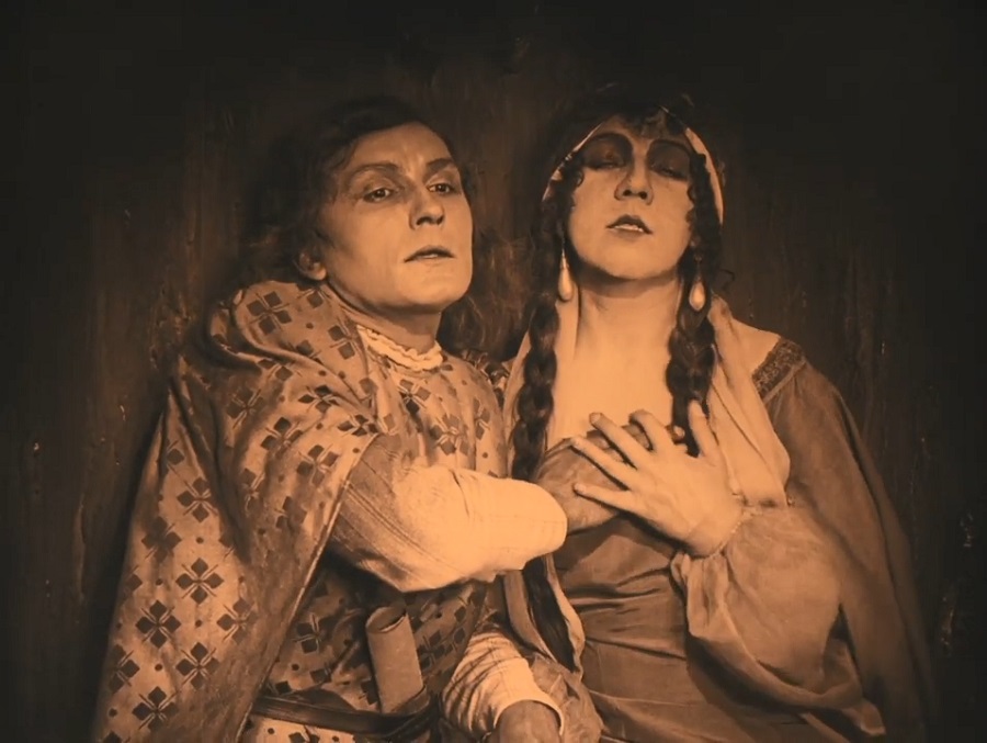 เรื่องราวความรักชู้สาวระหว่าง Miriam (รับบทโดย Lyda Salmonova ภริยาผู้กำกับ Paul Wegener) และอัศวิน Florian (รับบทโดย Lothar Müthel) แรกเริ่มสะท้อนแนวคิดรักไร้พรมแดน เพราะหญิงสาวเป็นบุตรของ Rabbi ยังไงก็เชื้อสาวยิว ส่วนอัศวินเป็นชาวโรมันผิวขาว มีความแตกต่างทางเชื้อชาติพันธุ์อย่างชัดเจน แต่เมื่อพวกเขาแรกพบเจอก็แทบจะถาโถมเข้าใส่ด้วยความใคร่ตัณหา