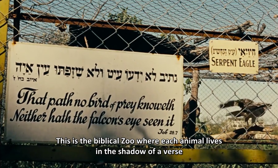 หนังเรื่องไหนที่ฉายภาพสวนสัตว์ ร้อยทั้งร้อยมักต้องการเปรียบเทียบ มนุษย์ = สัตว์ในกรง ถูกกักขังหน่วงเหนี่ยว ไร้ซึ่งอิสรภาพ ในบริบทของสารคดีเรื่องนี้เหมารวมถึงชาว Israeli อาศัยอยู่ในดินแดน Jerusalem (ถ่ายทำในสวนสัตว์ Jerusalem Biblical Zoo) นครศักดิ์สิทธิ์ของศาสนาในกลุ่ม Abrahamic ได้แก่ ศาสนายูดาห์, ศาสนาคริสต์ และศาสนาอิสลาม