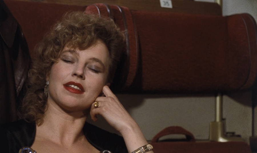 ทั้งขบวนชั้นหนึ่งมีพื้นที่ว่างเปล่ามากมาย Maria กลับตรงเข้าหา Karl Oswald เพราะได้ยินว่าเป็นนักธุรกิจ/เจ้าของกิจการ จึงต้องการสร้างความฉงนสงสัย ใช้มารยาเสน่ห์ ด้วยการแสร้งว่าหลับตาลงนอน ทำให้เขารู้สึกเดือดเนื้อร้อนใจ แต่ไม่อาจพูดบอกกระทำอะไร จนกระทั่งเธอแสดงความสามารถสื่อสารภาษาอังกฤษ จึงซื้อใจได้สำเร็จ