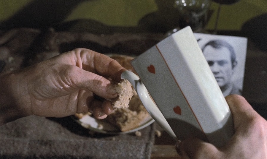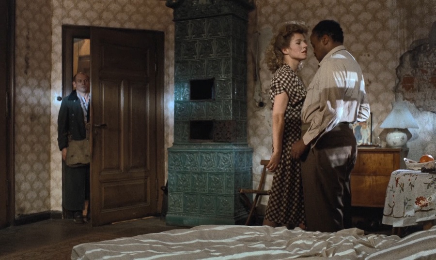 นี่เป็นฉากที่ทำให้ผมอ้าปากค้างในไดเรคชั่นผู้กำกับ Fassbinder ต้องการสร้างความกระอักกระอ่วน กลืนไม่เข้าคายไม่ออก เพราะผู้ชมจะสังเกตได้ตั้งแต่เริ่มต้นแล้วว่า Hermann ยืนจับจ้องมองอยู่ตรงประตู แต่เขาไม่คิดจะทำอะไรเลยหรือ? แล้วเมื่อไร่สองคนนี้จะเริ่มตระหนักได้เสียที?