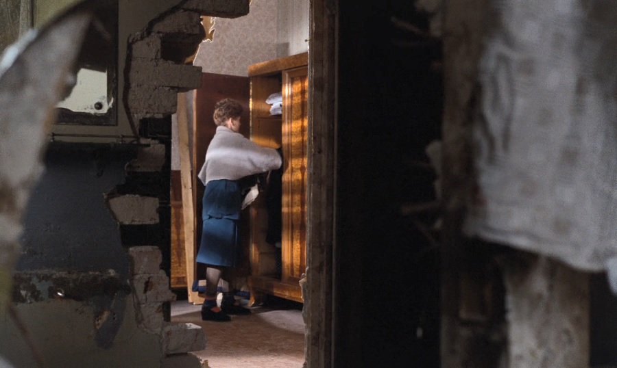 กิจกรรมหนึ่งที่ Maria นิยมชมชอบหาเวลาว่างเสียเหลือเกิน คือออกไปเตร็ดเตร่ตามตึกรามบ้านช่องที่มีสภาพปรักหักพัง มองผิวเผินเหมือนต้องการหวนระลึกความหลัง/ทรงจำสมัยยังเด็กๆสาวๆ แต่ผมครุ่นคิดว่าเธอต้องการย้ำเตือนสติตนเองถึงหายนะของเยอรมัน คือแรงผลักดันให้ต้องต่อสู้ดิ้นรน สร้างความมั่นคงทางอาชีพการงาน(และฐานะการเงิน) จนกว่าจะไต่เต้าถึงจุดสูงสุด เพรียบพร้อมทุกสิ่งอย่าง