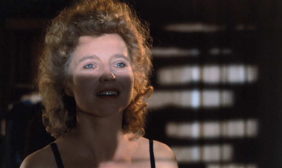 แบบเดียวกับ Chinese Roulette (1976) ที่พอสามีจับได้ว่าภรรยานอกใจ ก็ไม่ได้แสดงปฏิกิริยาเกรี้ยวกราดอะไรออกมา แค่หลังจากพวกเขาตระหนักสิ่งบังเกิดขึ้น Hermann จึงเดินเข้ามาจุดบุหรี่ มืดสั่นๆ ค่อยๆแสดงอาการคลุ้มคลั่ง เกือบจะควบคุมตนเองไม่อยู่ จนกระทั่ง Maria ตัดสินใจกระทำบางสิ่งอย่าง แล้วภาพช็อตนี้ใบหน้าอาบฉาบแสง-เงา สาดส่องผ่านบานเกล็ด (แบบเดียวกับ Bill ก่อนหน้านี้) รอยยิ้มดูอิ่มเอิบเบิกบาน ดีใจได้พบเห็นชายคนรัก ขณะเดียวกันก็อมทุกข์ทรมาน รู้สึกผิดต่อเขาอย่างรุนแรงที่กระทำสิ่งผิดคำมั่นสัญญา