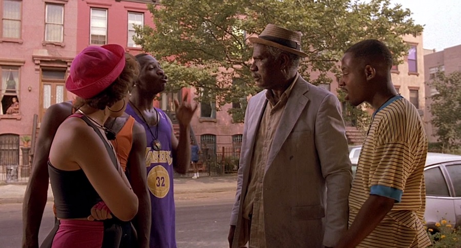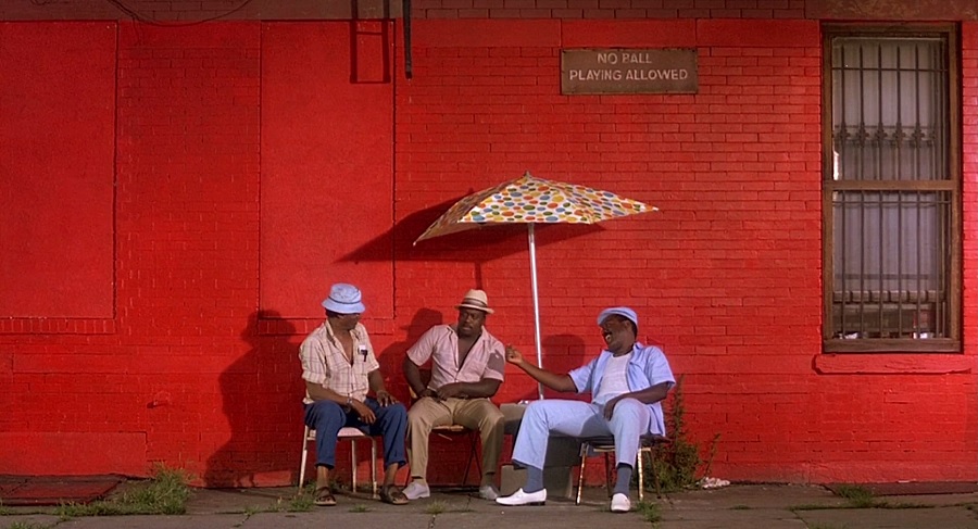 สามเกลอข้างถนน (รับบทโดยสามคอมเมเดี้ยน Robin Harris, Paul Benjamin, Frankie Faison) เห็นว่าแทบทั้งหมดเป็นการดั้นสด Ad-Lib ครุ่นคิดอะไรได้ก็บ่นพึมพึงไร้สาระออกมา, สังเกตดูเงาร่มนะครับ มันบังแดดเสียที่ไหน