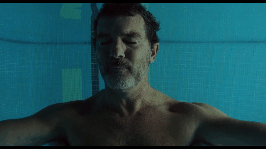 หลังจาก Opening Credit ก็ปรากฎภาพของ Salvador กำลังล่องลอยคออยู่ในสระน้ำ นี่คือกายภาพบำบัดภายหลังการผ่าตัดหลัง (ภาพริ้วรอยแผลผ่าตัด นั่นน่าจะแผ่นหลังของผกก. Almodóvar เองเลยกระมัง) เพื่อให้น้ำช่วยผ่อนคลายแรงกดดันกล้ามเนื้อ รู้สึกสบายตัวขึ้นมานิดหนึ่ง