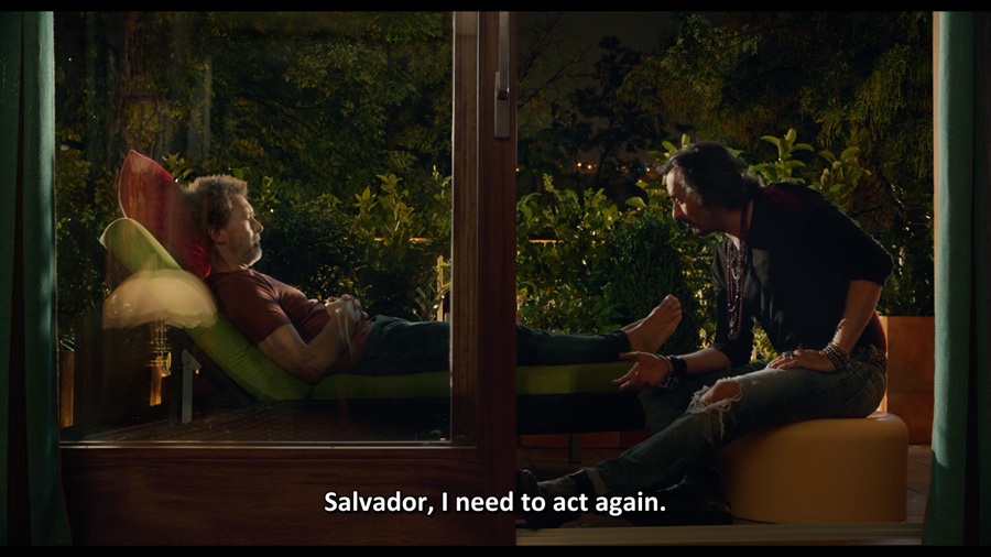 Salvador ในสภาพสะลึมสะลือ ครึ่งหลับครึ่งตื่นหลังเสพเฮโรอีน ตอบปฏิเสธ Alberto ที่ร่ำร้องขอบทละคอนเวที The Addiction อ่านแล้วชื่นชอบ ต้องการนำมาดัดแปลง ทำการแสดง เพื่อที่จะ ‘Comeback’ ประสบความสำเร็จอีกครั้ง แต่ทว่ากลับได้รับตอบปฏิเสธ … ภาพช็อตนี้ถ่ายตรงระเบียง มันเหมือนมีบางสิ่งอย่างกีดกั้นขวางทั้งสอง ยังไม่สามารถยินยอมรับ รื้อฟื้นความสัมพันธ์ ให้อภัยกันและกัน
