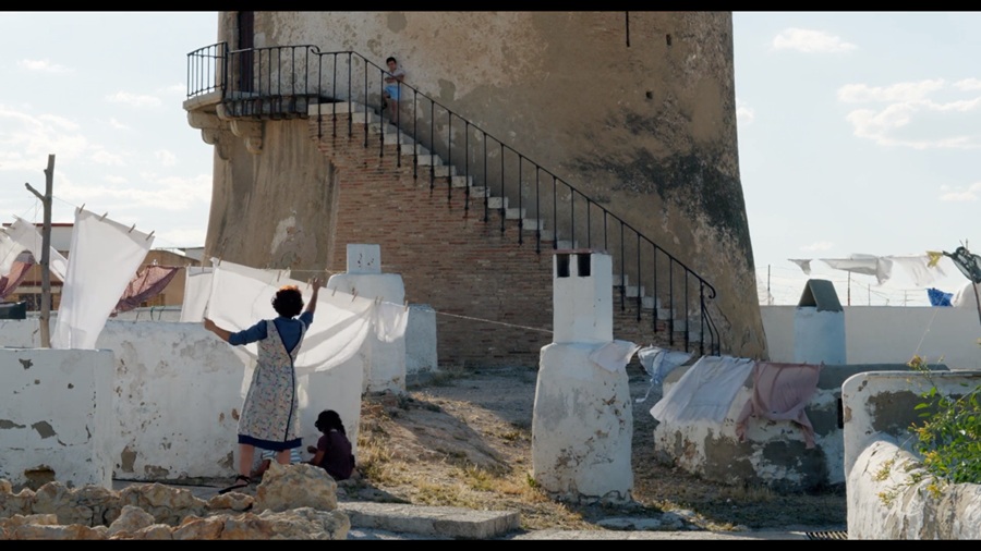 I chose this space because I wanted to contrast the gloomy and humiliating memories that a poor mother has of the postwar period with the illusion of the child who is content to see the sun through the skylight of the cave.