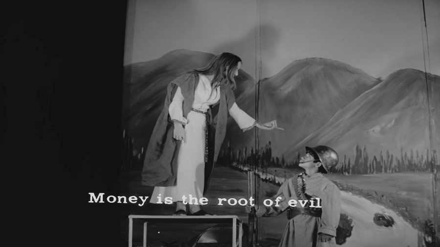 แทนที่จะใช้ม้าหรือลา กลับเป็นชายสูงวัยกำลังลากเทียมเกวียนอย่างเร่งรีบร้อน โดยมีเด็กๆคอยช่วยผลักดันอยู่ด้านหลัง วิ่งผ่านแอ่งน้ำ กระเด็นกระดอนถูกผู้อื่น ไม่มีแม้แต่คำขอโทษขอโพย … นี่เป็นฉากที่เหมือนจะไม่มีอะไร ใส่เสียงเพลงเต็ม ตัดต่อเร็วๆ เต็มไปด้วยความสนุกสนานครื้นเครง แต่บอกเลยว่าแฝงนัยยะได้อย่างลุ่มลึกล้ำ ทำเอาผมอ้าปากค้างตั้งแต่ซีนแรกนี้!