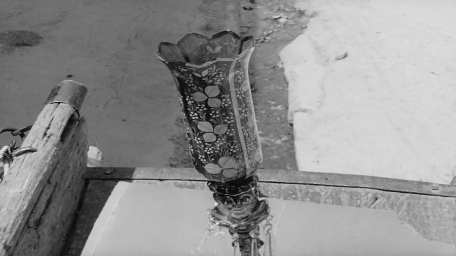 แล้วหนังก็ตบมุกด้วยการที่โคมไฟไม่แตกเพราะเกวียนไถล กลับเป็น Hekmati ทำตกแตกด้วยน้ำมือตนเอง หลังจากพบเห็นหญิงสาวคนหนึ่ง แล้วเกิดอาการตกตะลึง รักแรกพบ! มองผิวเผินเหมือนต้องการล้อตลกๆว่า หญิงสาวสวยทำให้บุรุษหลงลืมมารดา แต่นัยยะแท้จริงคือการทอดทิ้งสิ่งเคยหมกมุ่นยึดติด (การปกครองระบอบราชาธิปไตย) เพื่อสามารถเริ่มต้นนับหนึ่งใหม่