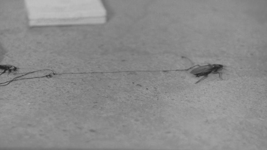 นี่เป็นอีกสัญญะที่ผมเห็นแล้วอึ้งไปเลย แม้เป็นเพียงของเล่นของเด็กชายคนหนึ่ง (น้องชายของ Atefeh) จับเอาแมลงสาปมาผูกเชือกที่ขา แล้วปล่อยให้มันเดินไปเดินมา แต่เราสามารถมองได้หลายๆนัยยะ