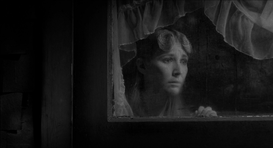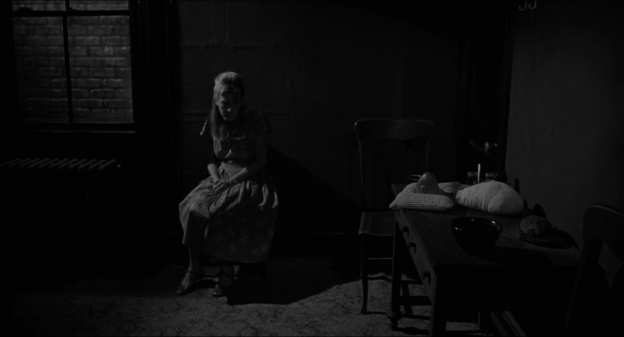 เช่นเดียวกับการแสดงของ Jack Nance ทุกอากัปกิริยาขยับเคลื่อนไหวของ Charlotte Stewart ล้วนสะท้อนสภาวะทางอารมณ์ สภาพจิตใจ สีหน้าอมทุกข์ เต็มไปด้วยความกระวนกระวาย ชัดเจนมากๆที่จู่ๆเกาเข่าแล้วเกิดอาการชักกระตุก นั่นทำให้ผมรู้สึกว่าตัวละครเหมือนถูก ‘over protection’ ได้รับการเลี้ยงดูอย่างไข่ในหิน เมื่อเกิดเหตุการณ์ไม่สามารถแก้ไข จึงจำต้องพึ่งพาครอบครัว มิอาจครุ่นคิดตัดสินใจอะไรๆด้วยตนเอง … ช่วงกลางเรื่องก็เฉกเช่นเดียวกัน เมื่อไม่อาจอดรนทนต่อต่อสภาพแวดล้อมในห้องของ Henry Spancer เลยตัดสินใจหลบหนีกลับบ้าน ห่างหายตัวลาลับจากไปเลย