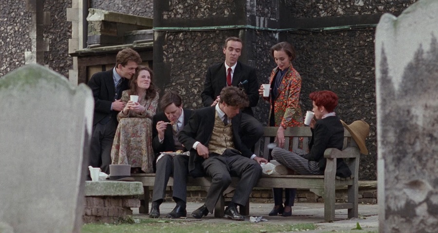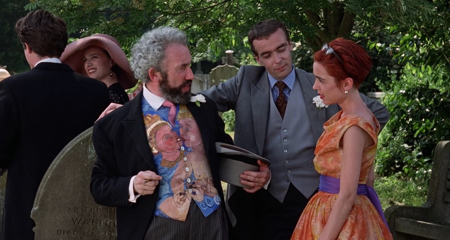 Four Weddings and a Funeral (1994) เป็นภาพยนตร์ที่ถือว่าน่าสนใจไม่น้อย หาญกล้าท้าขนบประเพณียุคสมัยนั้น เต็มไปด้วยลูกเล่นในการนำเสนอ สอดแทรกมุกตลกตกเก้าอี้มากมาย (ใครฟังภาษาอังกฤษออกจะตระหนักถึงความลึกล้ำมากๆ) รวมถึงความหลากหลายทางอารมณ์ แถมด้วยเพลงประกอบฮิตติดหู ผลลัพท์ประสบความสำเร็จอย่างไม่มีใครคาดคิด ทั้งรายรับและคำวิจารณ์